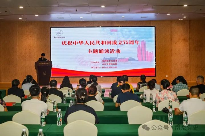在诵读环节,来自南京市委党史办、渡江胜利纪念馆的党、团员和志愿者们,深情地诵读了“庆祝中华人民共和国成立75周年”的主题作品。这些作品不仅回顾了新中国成立以来的辉煌成就,更表达了对党、对祖国的深情厚谊和崇高敬意。现场观众被深深感染。