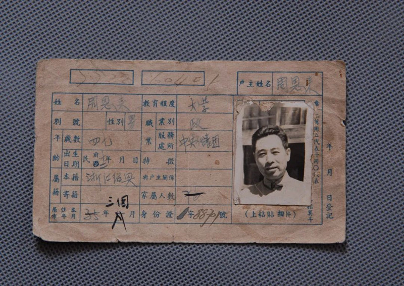 1946年5月,中共代表团由重庆迁来南京,工作人员先后有200多名,国民党政府为了监视中共代表团工作人员的行动,对代表团工作人员及其家属都进行登记和备案,建立集体户口卡和个人户口卡,即户卡和口卡,类似于当前的户口本和身份证,获取代表团工作人员信息,以便实施更加有效的监视。户口卡上的户主都是周恩来,其中个人户口卡详细登记了姓名、教育程度、职业、年龄、属籍、居住年月和身份证字号等个人信息,并贴上了照片。新中国成立后,梅园新村纪念馆从市公安局敌伪档案里查找到的户口卡共有集体户口卡22张、个人户口卡87张,包括周恩来、邓颖超、李维汉、廖承志、钱瑛等人的户口卡,它们是国民党监视中共代表团的历史见证。现为馆藏国家一级文物。
