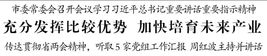 2月7日,市委常委会召开会议,学习习近平总书记重要讲话重要指示精神,传达贯彻省两会精神,听取市人大常委会、市政府、市政协、市法院、市检察院党组工作汇报。市委书记周红波主持并讲话。