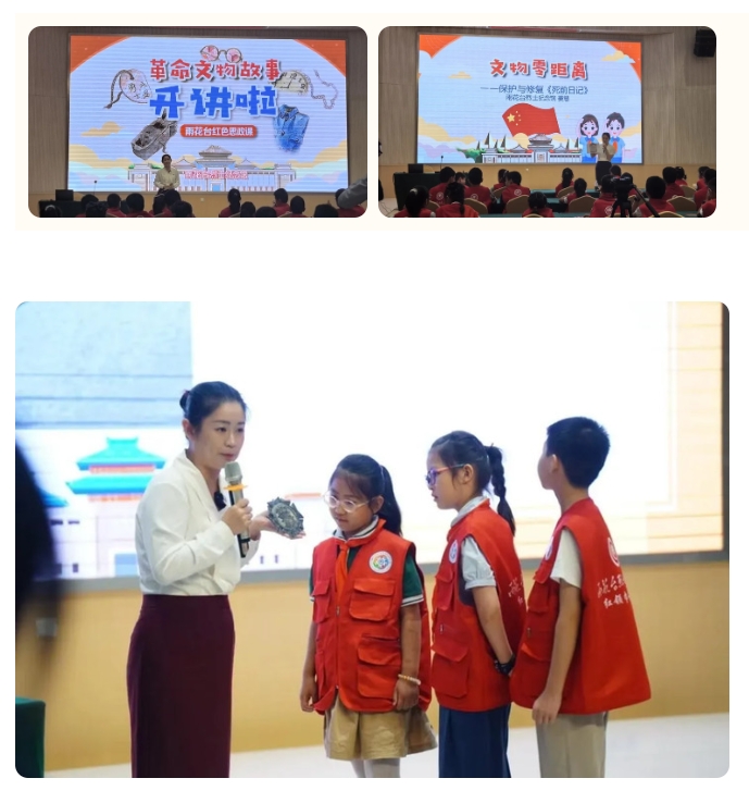 下午的活动中,同学们上了两节生动的雨花台特色课程—《革命文物故事开讲啦》和《建筑里的缅怀》。通过了解徽章、日记、刻章等红色革命文物,感知背后的英烈精神;通过探索雨花台烈士陵园的建筑物,感悟背后的故事和内涵,可谓收获满满!