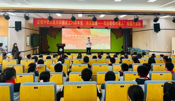传承是最好的纪念,践行是最有力的弘扬。为庆祝中华人民共和国成立75周年,9月开始,由南京市精神文明建设办公室指导,雨花台烈士陵园管理局、市教育局、市党史工办主办,江苏省广播电视总台优漫卡通卫视频道承办的“雨花思政——我是信仰传承人”校园行将持续走进全市12个区、20所中小学,以云端微课程、特色宣讲、思政名师开讲、红色文艺等多样化创新形式,引导青少年学习和传承弘扬雨花英烈事迹与精神,在心中种下信仰的种子,打造生动的大中小学思政一体化课堂。9月25日,活动走进了南京市石鼓路小学、南京市燕子矶中学,让我们一起去活动现场看看。