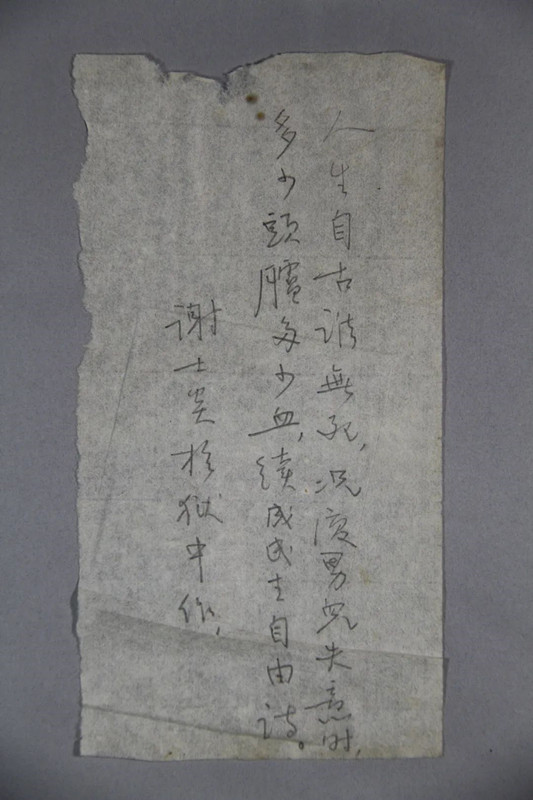 谢士炎用铅笔头和随手撕下的一节纸写下一首诗,抒发甘为革命牺牲的心志:“人生自古谁无死,况复男儿失意时。多少头颅多少血,续成民主自由诗。”