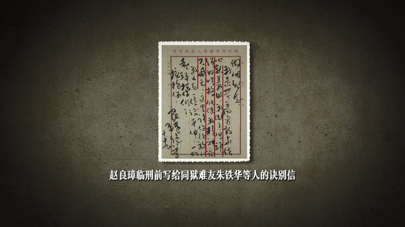 而年轻、乐观的赵良璋写下一首《囚徒之歌》,鼓励狱友:“火山终有熄灭日,黎明之前必黑暗。”刑前,他在留给难友的遗书中写道:“我是带着勇敢与信心就义的。我虽倒了,但顽强的性格仍使我精神永不灭亡。”