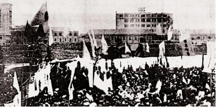 ▲1925年5月24日,纱厂工会在沪西潭子湾举行顾正红烈士追悼大会。
